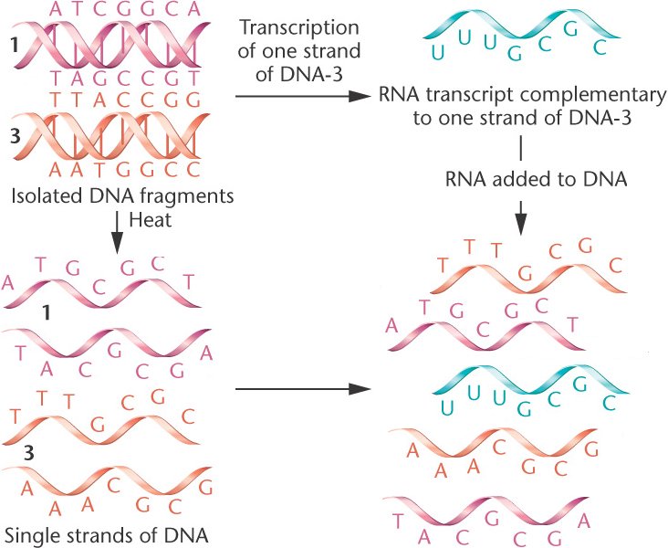 complementary to one of the 2 DNA strands.