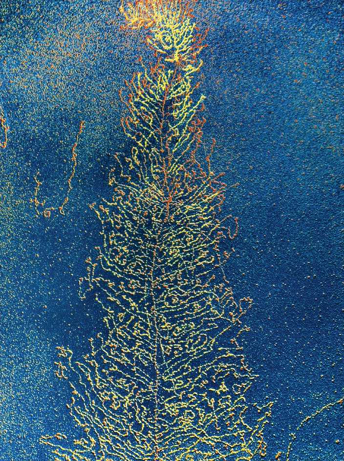 Electron micrograph visualizing the process of transcription.