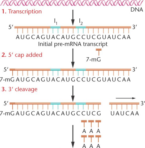 - A "cap" is added to the 5' end.