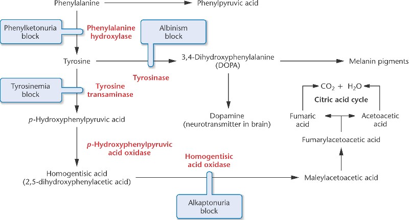 require several enzymes. Various metabolic blocks due to mutations lead to defective enzymes and the disorders