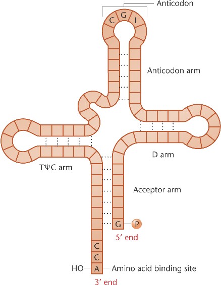 The anticodon (CGI) of this tRNAala molecule specifies the amino acid