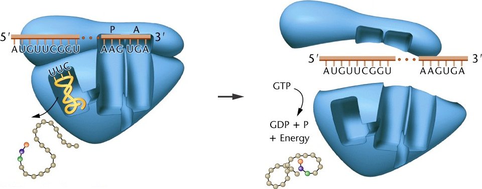 GTP-dependent release factors cleave the polypeptide chain from the terminal tRNA