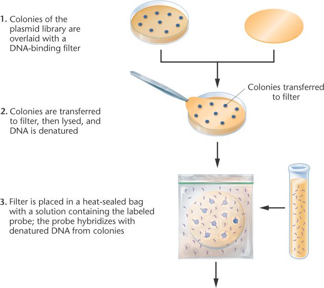 - Colonies of a plasmid library is overlaid with a DNA binding filter.