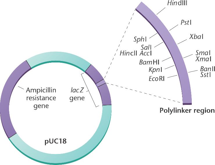 The plasmid pUC18 contains an antibiotic resistance gene to screen for