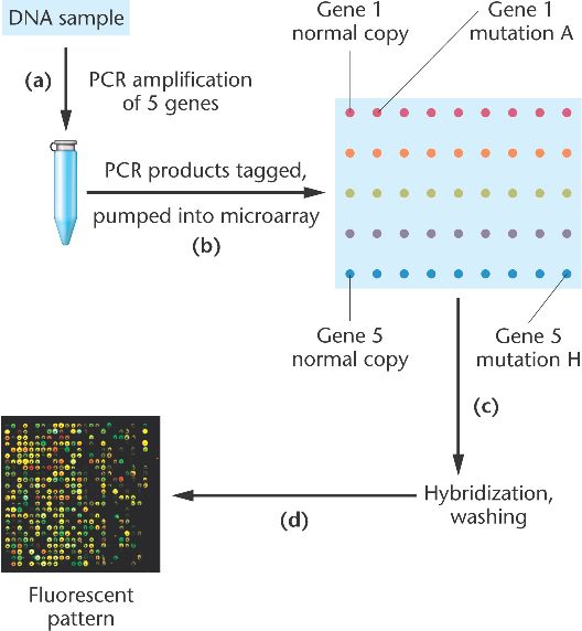 - DNA for 5 genes are amplified by PCR, denatured, and