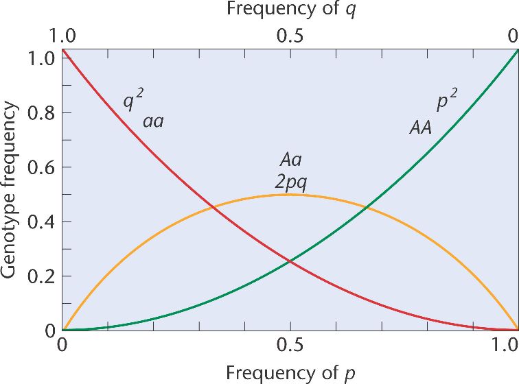 the frequencies of all three genotypes can be calculated once the frequency of either allele is known.