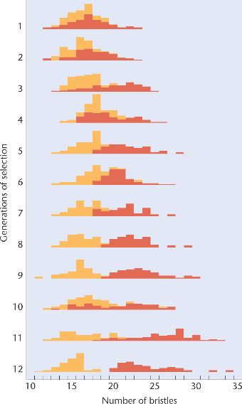 In each generation, only the flies with high- or low-bristle numbers are allowed to breed.