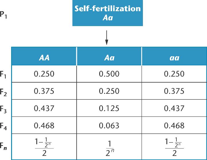 In the extreme form of inbreeding, self-fertilization, for an individual heterozygous at one locus, 94% of its descendants are homozygous in 4 generations.